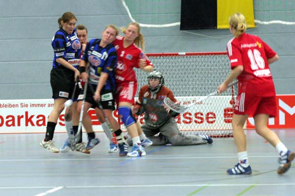 vor Schluß nahmen die Rockets den Goalie raus. 48 Sekunden vor Schluß waren so plötzlich 6 gegen 4 Feldspieler