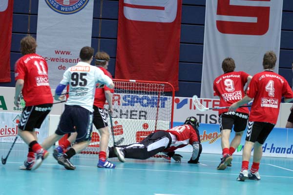 auf dem Feld zu stehen. Weißenfels hatte das Spiel auf ein mal im Griff und hatte bald durch Gahlert und Karlstam