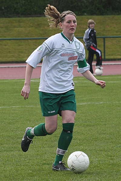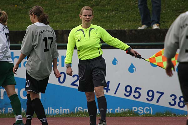 etwas mehr Probleme machte, als dies zunächst nötig schien. Bei der danach folgenden Ecke scheiterte Saolkovic an der Latte, danach monierte Brauweiler vehement ein Handspiel der Duisburgerinnen im Strafraum, was aber aus meiner Position nicht eindeutig