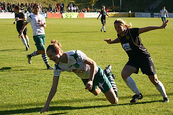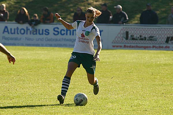 Gäste in der 55. Minute: Laudehr passte unpräzise auf Fuss, der Ball wurde von Carolin Dej abgefangen, die aber noch kurz vor Lena Hohlfeld