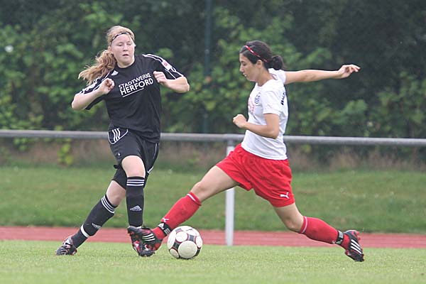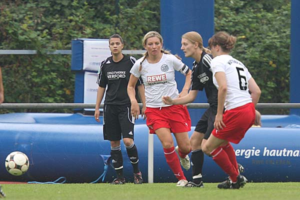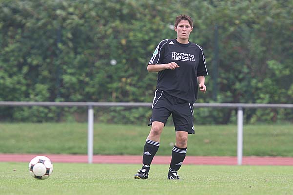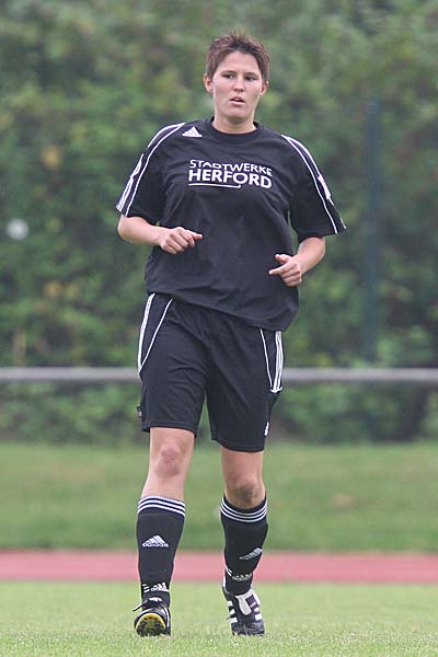 zimmerte die ehemalige Duisburgerin den Ball aus etwa 30 Metern unter die Latte - auch wenn die Herforder Bank darüber philosophierte, wie Torhüter-Stammkraft Sonja Speckmann wohl bei diesem Versuch verfahren wäre und