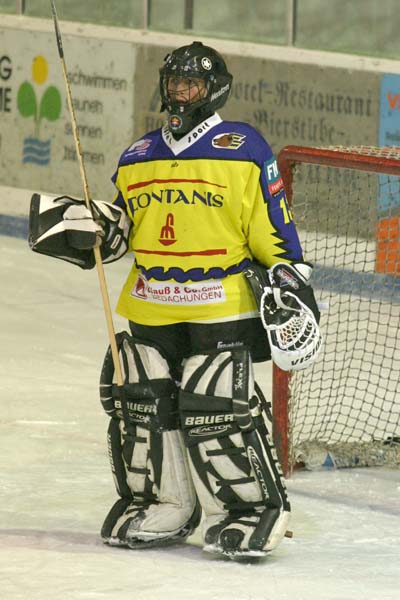 Schuß von der Mittellinie im Braunlager Tor ein, aus der Reaktion der Torfrau vermute ich einen abgefälschten Schuß.