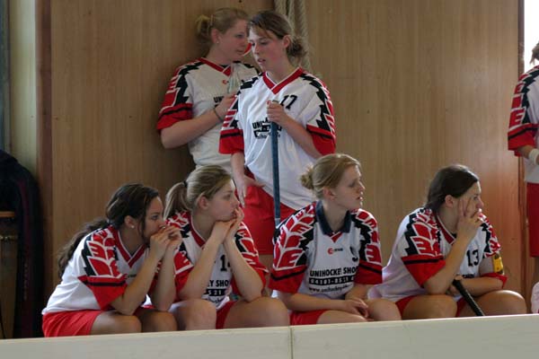 Schon in der ersten Minute schien für die Gastgeber die Partie gelaufen: Nach einem Doppelschlag der Sächsinnen lag die Spielgemeinschaft bereits mit 0:2 zurück. Zwar fingen sich die rot-weiß gekleideten Damen danach und gestalteten die Partie relativ ausgeglichen, die Dresdenerinnen hatten aber deutlich mehr Torchancen. Gegen Ende des ersten Abschnitts fiel dann sogar der dritte Treffer der Elbstädterinnen. Als in der 31. Minute dann auch noch das 4:0 fiel, war die Partie entschieden. In den Schlußminuten spielten die Gastgeberinnen ohne Torwart, setzten alles auf eine Karte und wurden mit dem hochverdienten Ehrentreffer 27 Sekunden vor Schluß belohnt. Unter dem Strich scheiterten sie aber an ihrer mangelhaften Chancenauswertung und an durchweg, wenn auch teilweise nur leicht überlegenen Gegnerinnen. ![]() ![]() ![]() ![]() ![]() ![]() ![]() |
