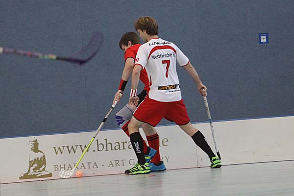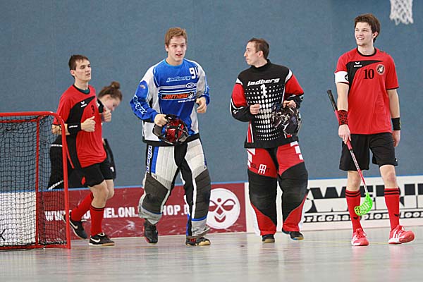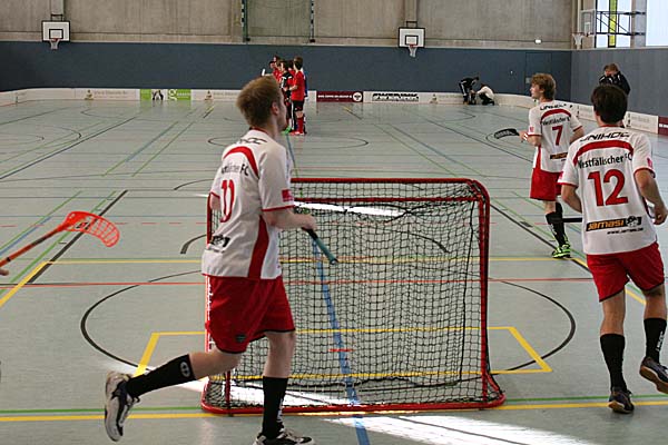 auch im gesamten Spiel, zwar mehr Potential, wirkte aber umständlich, während auf der anderen Seite eine Mannschaft stand, die sicherlich mit den größten Talenten in puncto technischer Finesse gesegnet ist, aber Ruhrgebiets-typisches "Maloche-Floorball" spielte:
