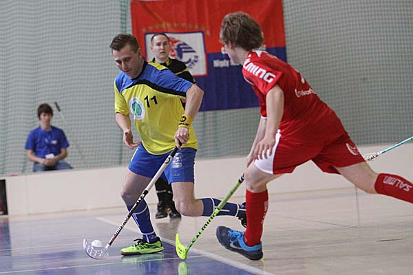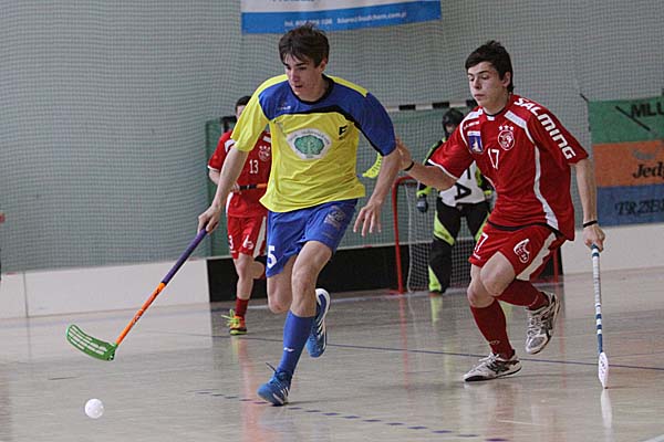 24 Tore in einem Spiel, davon elf im ersten Drittel: schon diese blanke Zahl zeigte, was für ein wahnsinniges Floorball-Spiel sich in der zweiten Partie des Tages abspielte - leider war dieses Match um Platz 3 der Herren sicherlich nicht das Sahnestückchen, sondern eher der Tiefpunkt eines so schön organisierten Superfinal-Events: wähernd in den ersten fünf Minuten das Spielsekretariat sich noch ausruhen durfte, weil in einem schier wahnsinnigen Rhythmus Akteure aus dem Spielbereich befördert wurden, gehörten die nächsten Minuten einzig und allein Madex Gorale Nowy Targ: zwischen der 5. und der 8. Minute bedeuteten fünf Tore für die Mannschaft aus Südpolen eigentlich schon eine kleine Vorentscheidung - Siedlec wirkte nach dem physischen Beginn der ersten Minuten gar nicht mehr bereit und fing sich in der Folgezeit in der 11. und 14. Minute noch weitere Tore. Sieben Tore Unterschied - eigentlich war die Partie damit entschieden. Zweimal kam Siedlec noch einmal ins Spiel zurück, kassierte dann aber nach dem zwischenzeitlichen 8:4 und 12:7 dumme Tore - das dreizehnte Tor für Nowy Targ vielleicht so etwas wie das symptomatischste Tor des Tages: in Überzahl hatte Siedlec - Patryk Wronka musste in der 46. Minute auf die Strafbank - auf 12:8 noch einmal zu verkürzen - bei einem langen Befreiungsschlag, der weit am Tor vorbeigesegelt werde, wollte Maciej Jastrzebski im Siedlecer Tor den Ball schnell machen, machte sich lang und schob den Ball nach vorne - doch dort stand mit Piotr Kostela, der sich für das geschenkte Unterzahltor nur bedanken konnte. Am Ende schaukelte so Nowy Targ den Sieg in einem Spiel mit zu vielen Fehlern und Nervositäten auf beiden Seiten nach Hause.