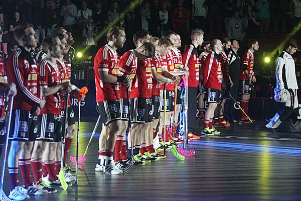 das Finale der Herren stand nun auf dem Programm und mit der Paarung Falun gegen Storvreta gab es sogar eine Partie mit Derby-Charakter. In puncto Fan-Unterstützung hatte Storvreta, die gleich einen ganzen Sonderzug gechartert