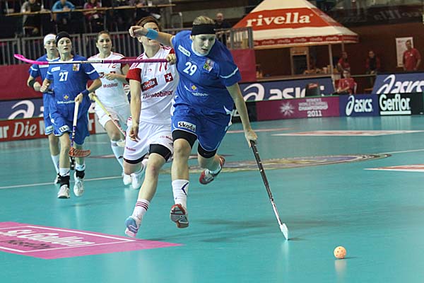 Nach dem spannenden Spiel um Platz 5 war die nahezu eintönige Meinung im Presseraum der vermeidlichen Experten: viel Attraktivität konnte man von den beiden folgenden Spielen nicht erwarten. Zu dominant hatte Schweden bis dato gespielt, als das man Finnland auch nur eine Chance zumutete und auch auch für das Spiel um Platz 3 sah man die Schweiz als den haushohen Favoriten gegen Tschechien. Als Julia Suter nach fünf Minuten in Führung brachte, war die MS Coray also voll auf Kurs, doch danach - um in der Seefahrer-Sprache zu bleiben - begab man sich immer mehr selber in schwierige Fahrwasser. Die Schweizer waren zwar bis etwa zur 25. Minute deutlich feldüberlegen, machten daraus aber viel zu wenig und enttäuschten die grossartige Kulisse. Dann kam Tschechien immer mehr auf, Heidi Jud konnte einen Schuss in der 29. Minute mit der Maske noch gerade so an den Pfosten klären - umso wervoller war es da, dass Corin Rüttimann in der 31. Minute vom rechten Flügel auf 2:0 erhöhte. Nach dem Spielverlauf war dies aber immer noch eine magere Führung - doch es kam noch schlimmer: Ramona Gabathuler holte sich eine dumme Zeitstrafe nach einem Abstandsvergehen ab und Iveta Hyrslova mümmelte den Ball in der 35. Minute in Überzahl über die Linie. Als zwei Minuten später Hanka Lackova einen erneuten "Rebound" verwertete, war das Spiel auf den Kopf gestellt. Das gab natürlich tschechisches Selbstvertrauen, während die Schweiz immer mehr ideen- und systemlos schien. In der 52. Minute sorgte dann Dominika Steglova für den Todesstoss und brachte ihre Tschechinnen erstmals in Führung. Mehr als Kampfgeist konnte man den Schweizerinnen, die auch munter ihre Reihen wechselten, dabei leider nicht unterstellen. Auch dass Figi Coray erst 47 Sekunden vor Spielende dazu kam, Heidi Jud gegen eine sechste Feldspielerin zu tauschen, war geradezu symptomatisch. Gefahr für Jana Christianova, die mit ihrer starken Leistung an die schweizer Finalplayoffs der Vorsaison erinnerte, wurde in der Schlussphase immer weniger, so dass letztlich Tschechien absolut verdient die Bronzemedaille gewann, während die Schweiz im eigenen Land in das sportliche Tal der Tränen gestürzt wurde.